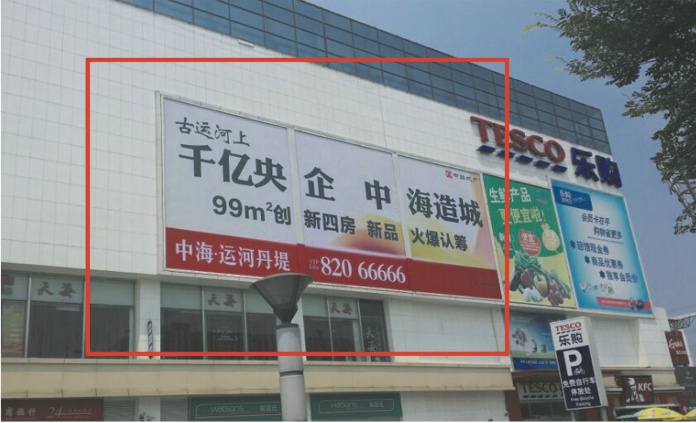 邗江路与江阳中路力宝广场乐购入口上方墙面大牌【图片待完善】